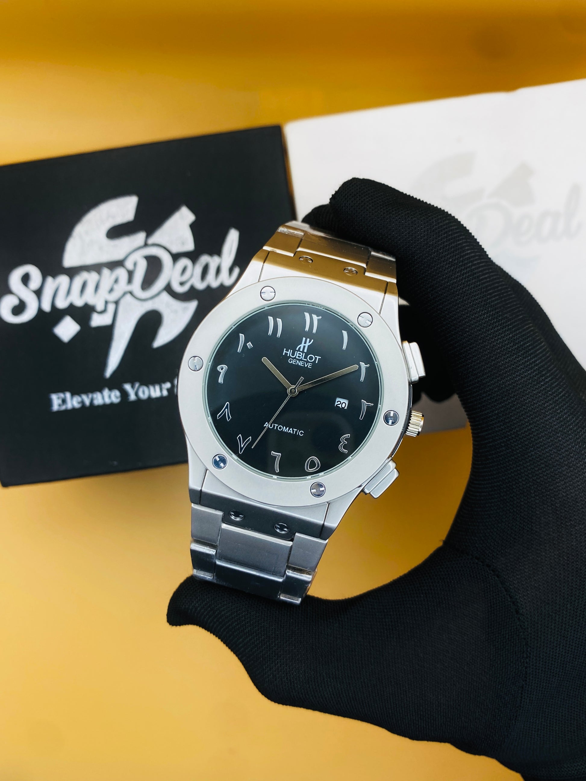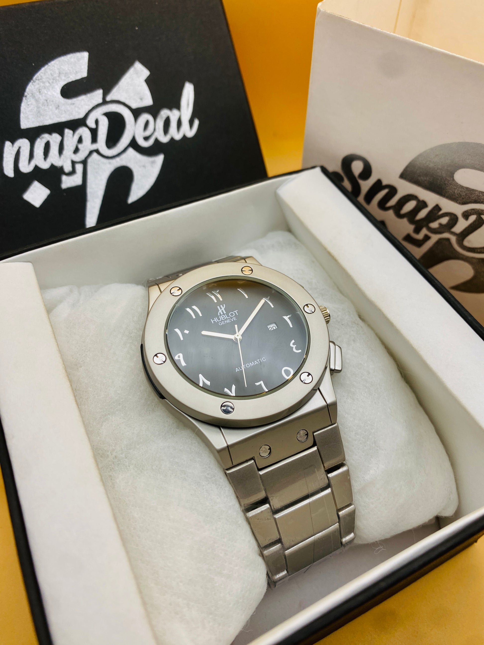 Hublot Silver with (Black Arabic Dial)