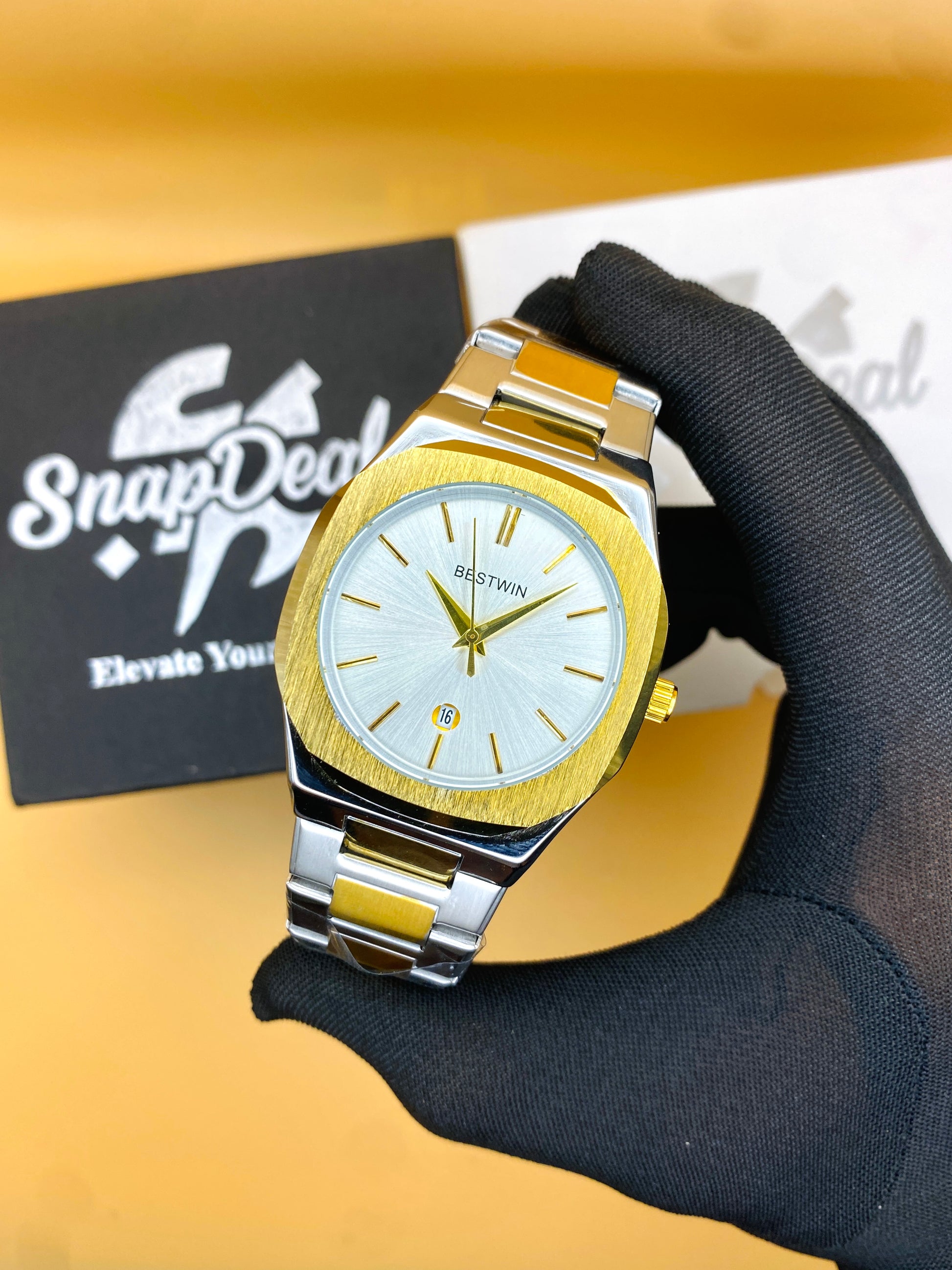 Bestwin Stainless Steel Golden-Silver with (White Dial)